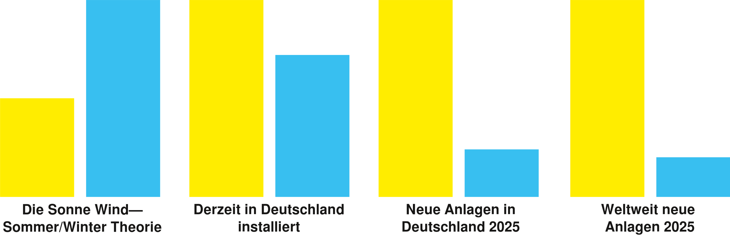 Wie kann man 24-Strom zu 24×365-Strom veredeln? Seit drei Jahrzehnten gibt es die Sonne-Wind-Theorie: Die Sonne liefert mehr im Sommer, und der Wind liefert mehr im Winter. Dazu bräuchte man in Europa im Durchschnitt 2 kW Windanlagen für jedes kW Photovoltaik. Derzeit kommen in Deutschland 0,72 kW Wind auf 1 kW Photovoltaik, und die Lücke wird schnell größer: 0,24 in Deutschland, 0,2 in der EU und weltweit bei Neuinstallationen in den Jahren 2024 und 2025. Von 24-Strom zu 24×365-Strom